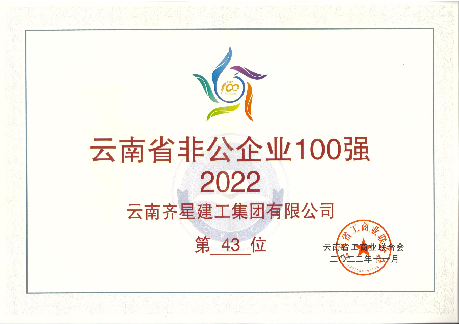 2022年云南非公企業(yè)百強(qiáng)第43位