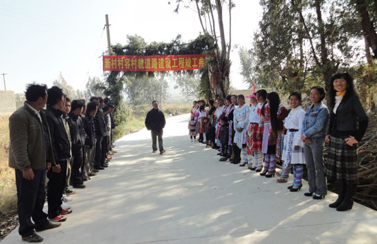 陳家寨村民歡慶村容村貌道路建設(shè)工程竣工(圖中,左一陳家寨村民委員會(huì)村支部書記周保昌,左二蒙自齊星混凝土有限公司法人代表張家賓,系紅河州齊星房地開發(fā)有限公司副總經(jīng)...