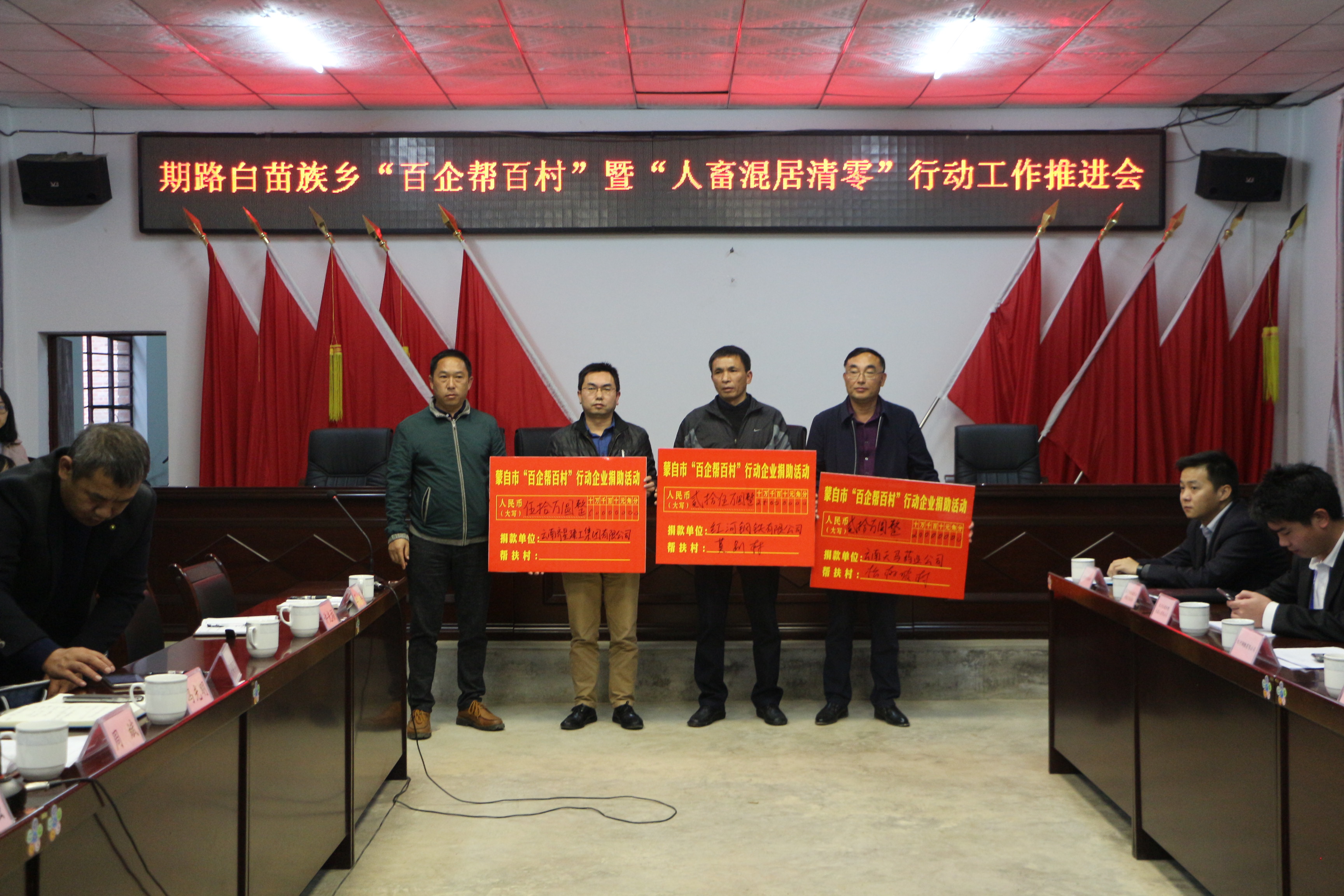 11月7日下午,蒙自市期路白苗族鄉(xiāng)召開“百企幫百村”暨“人畜混居清零”行動(dòng)工作推進(jìn)會(huì),集團(tuán)公司工會(huì)主席白誠(chéng)東代表集團(tuán)公司應(yīng)邀參加會(huì)議。會(huì)上,白誠(chéng)東代表集團(tuán)公司發(fā)...